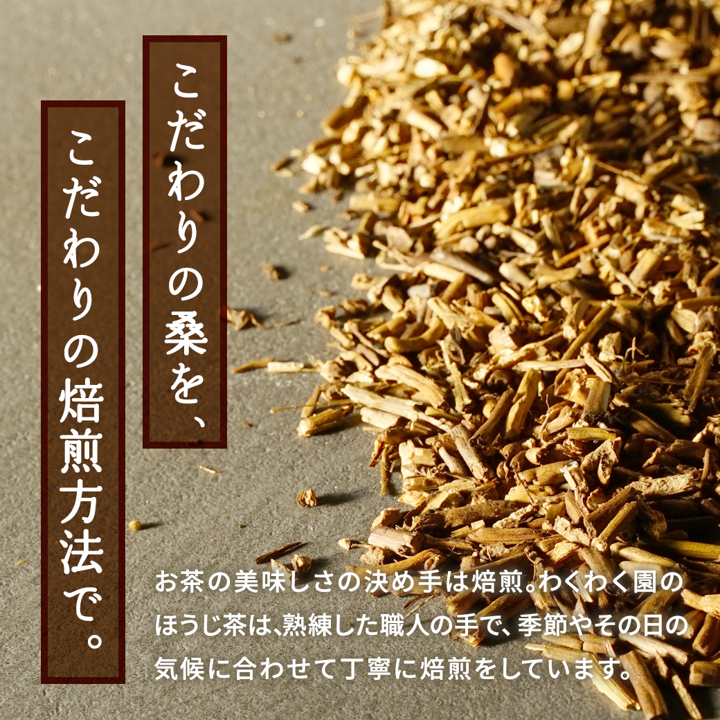 緑茶のようなのに苦くない、有機桑茶のように香ばしいのにほんのり甘い、新しいカタチの優しいお茶、それが桑のほうじ茶です。