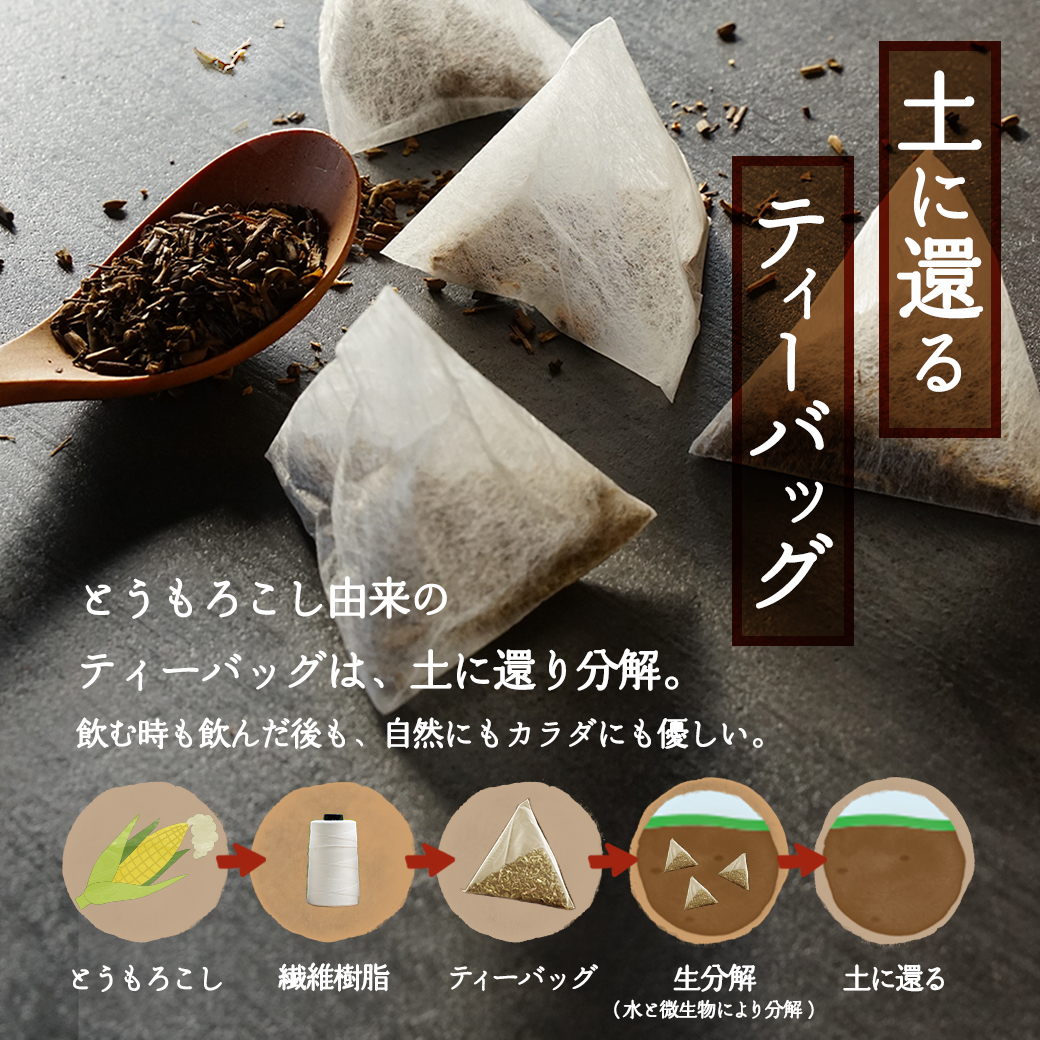トウモロコシ由来のティーバッグだから、土に還り分解。