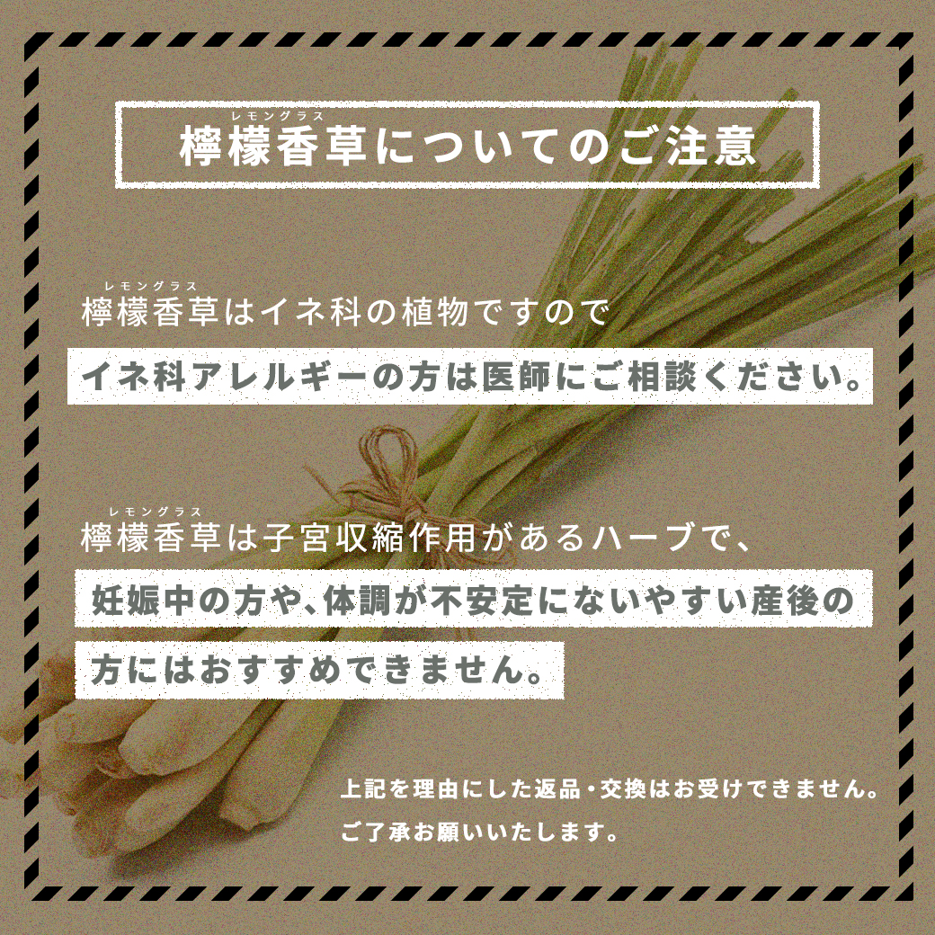 ■レモングラスはイネ科の植物ですので、イネ科アレルギーの方は医師にご相談下さい。