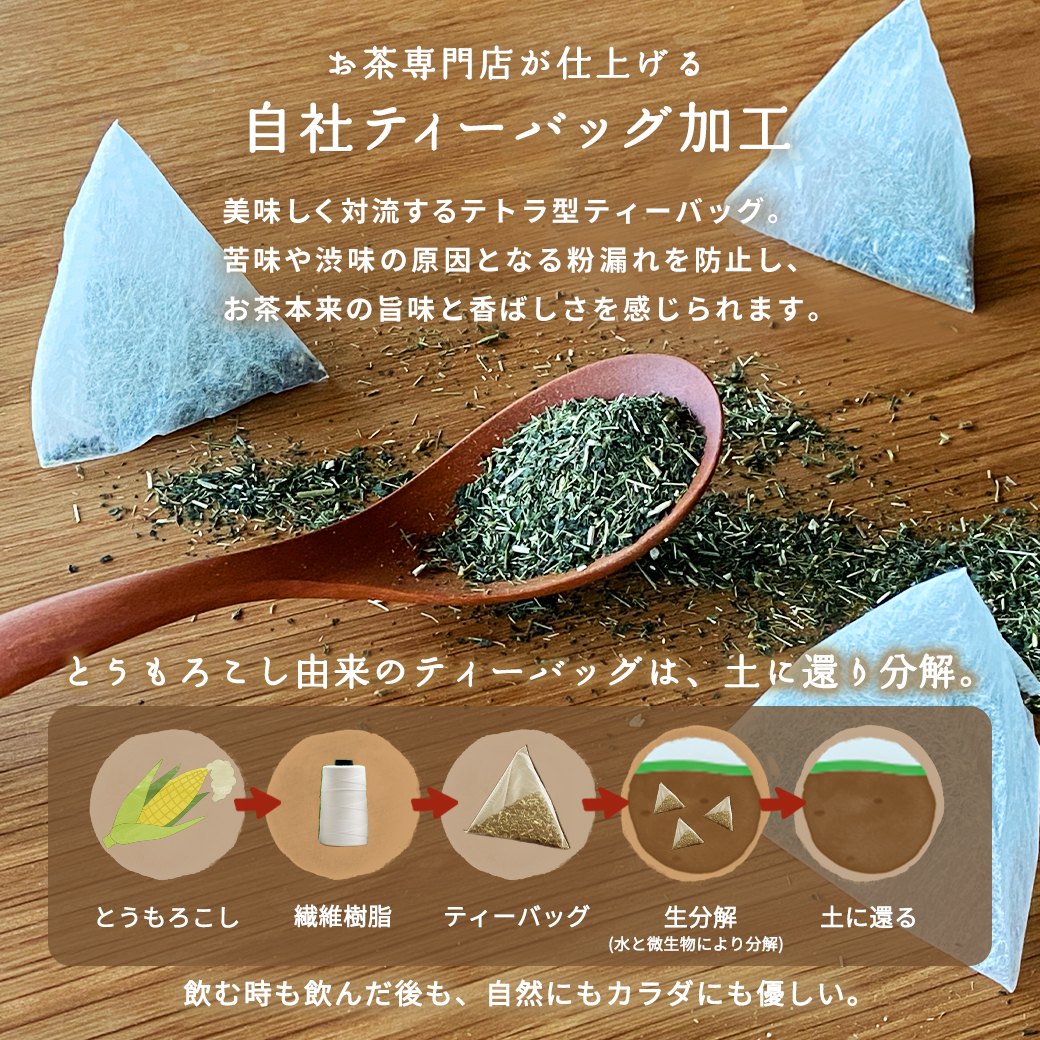 ・マグカップや急須にティーバッグ1包を入れ、お湯を注いで1~2分ほど置いてからお召し上がりいただくことも可能です。
