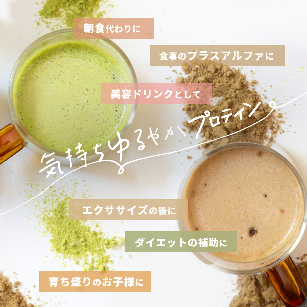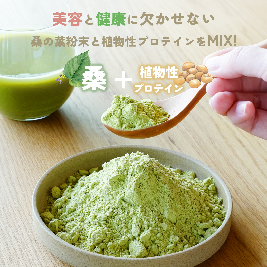 きな粉(大豆を含む:遺伝子組換えでない)(九州産)、植物性たん白(大豆を含む)、加工黒糖、上白糖(北海道産てんさい)、抹茶、有機桑葉粉、緑茶粉末